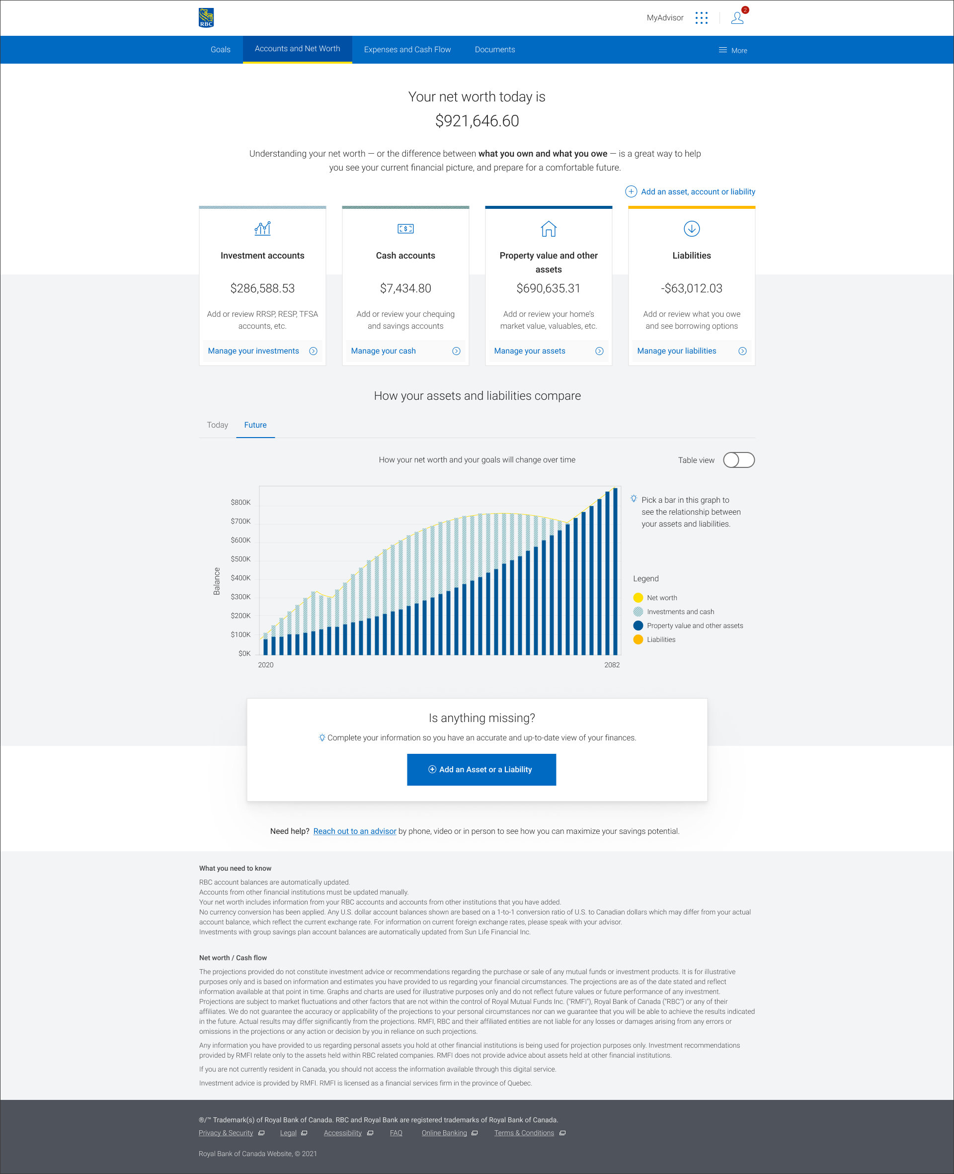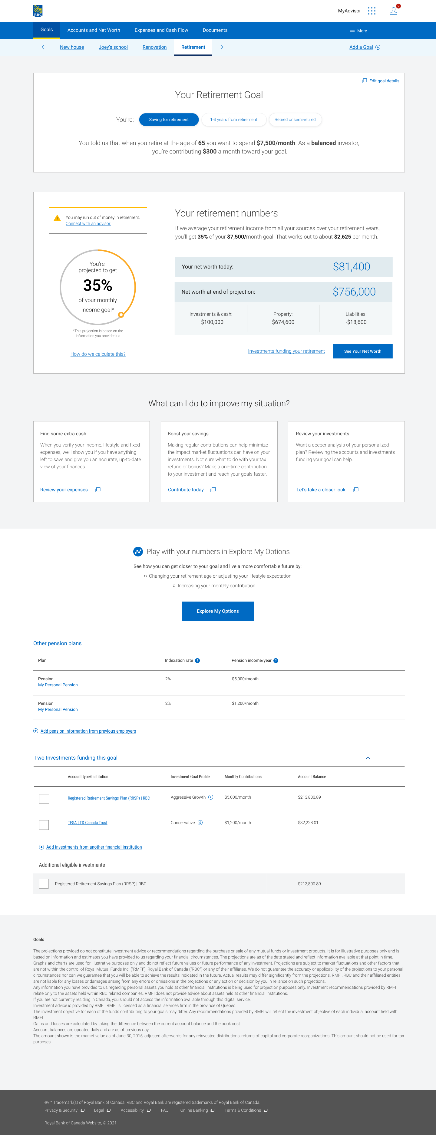 While working at RBC digital, I had the opportunity to be working in different initiatives, with multidisciplinary teams across the platforms. My main project was the colossal MyAdivisor a free digital advice platform that’s available exclusively to RBC clients. They get a personalized savings plan, helpful tips, real-time data visualization and forecasts to help them stay on top of their money and reaching their goals. MyA is a 7 years long project with a budget of 10.5M with an amazing team.