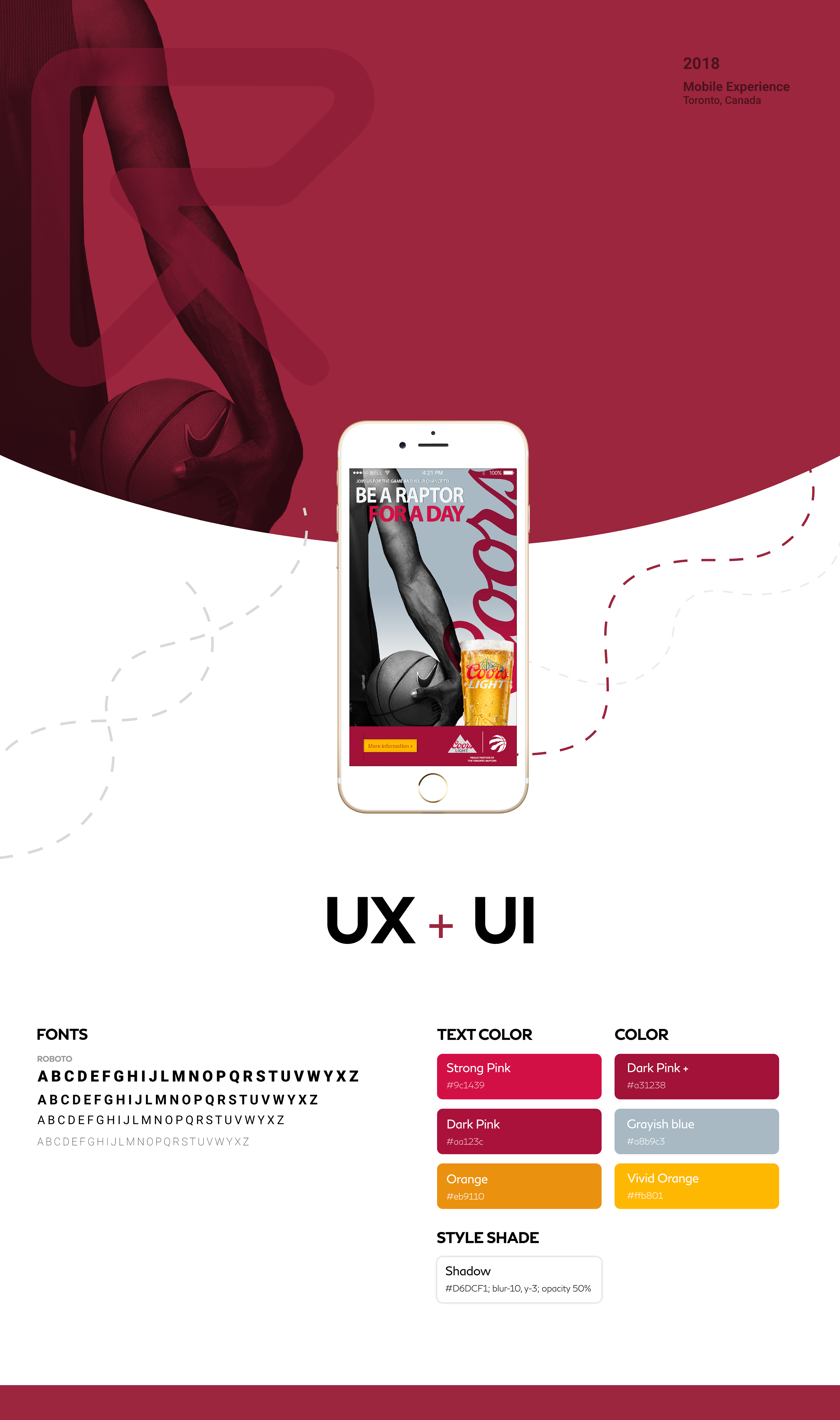 I was asked to quickly conceptualize a high level visual experience for Coors Light - establishing a top line visual language and interactivity that could be used during the Toronto Raptors game at a bar.